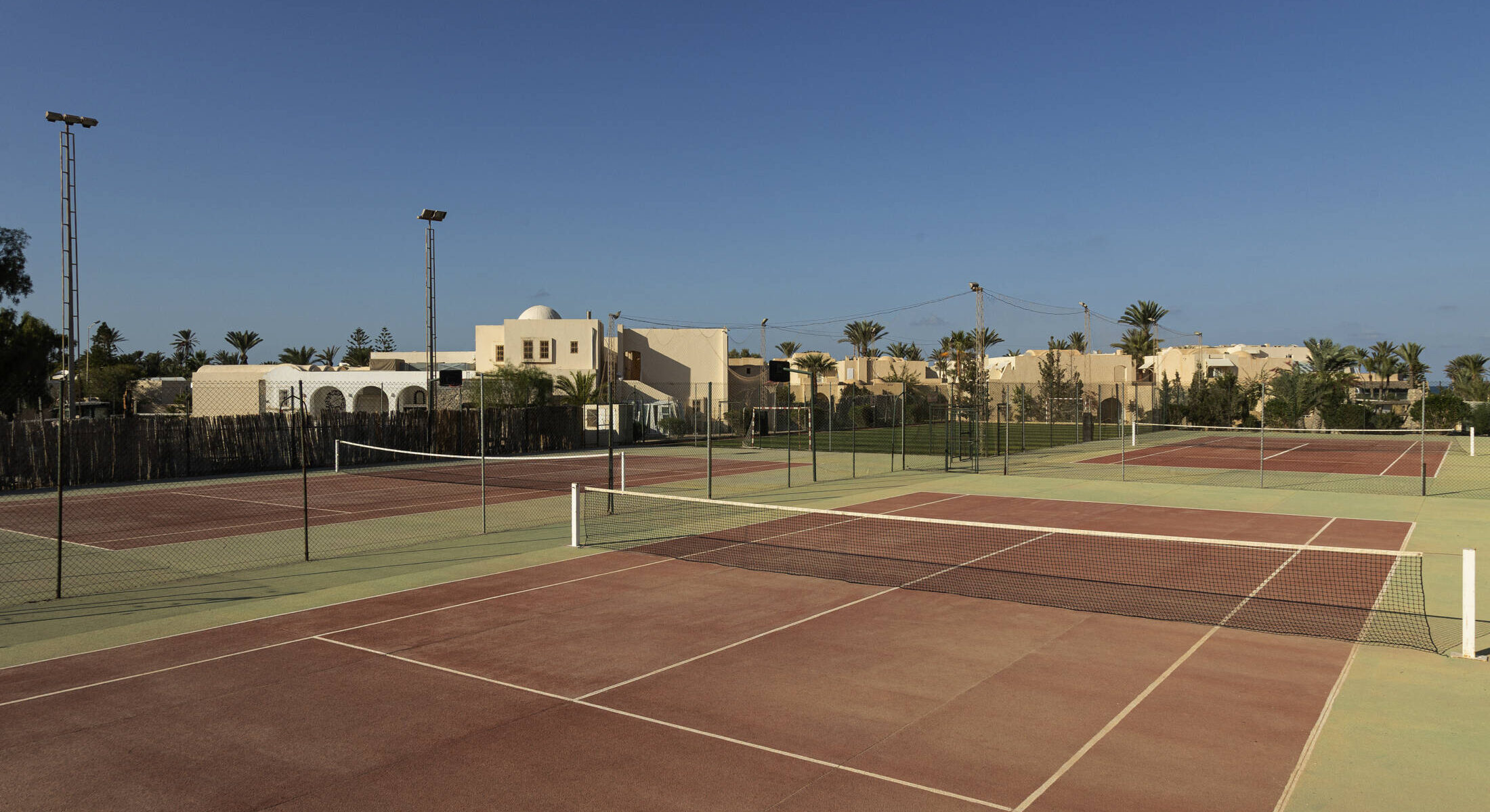 Pour les sportifs, la présence d’équipements de sport est indispensable pour passer de belles vacances. Vous êtes amateur de balle jaune et de plein air ? Perfectionnez votre service tout en jouissant du climat tunisien dans notre hôtel avec courts tennis à Djerba.