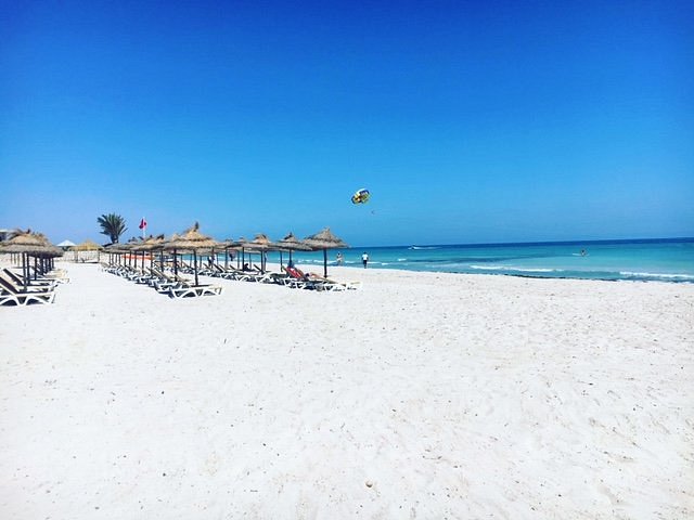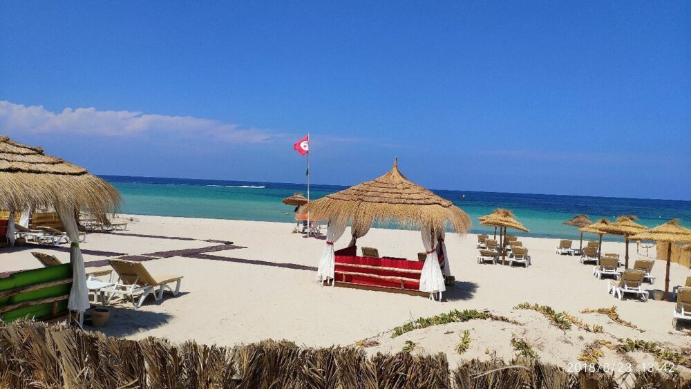 Profitez du sable fin et des eaux turquoise depuis notre hôtel avec plage privée à Djerba. Exclusivement réservée aux clients de l’hôtel, cette oasis de beauté naturelle garantit tranquillité et farniente tout au long de la journée. Parasols, chaises longues et service de serviettes (changement avec caution de 1 €) sont à disposition pour un maximum de confort.